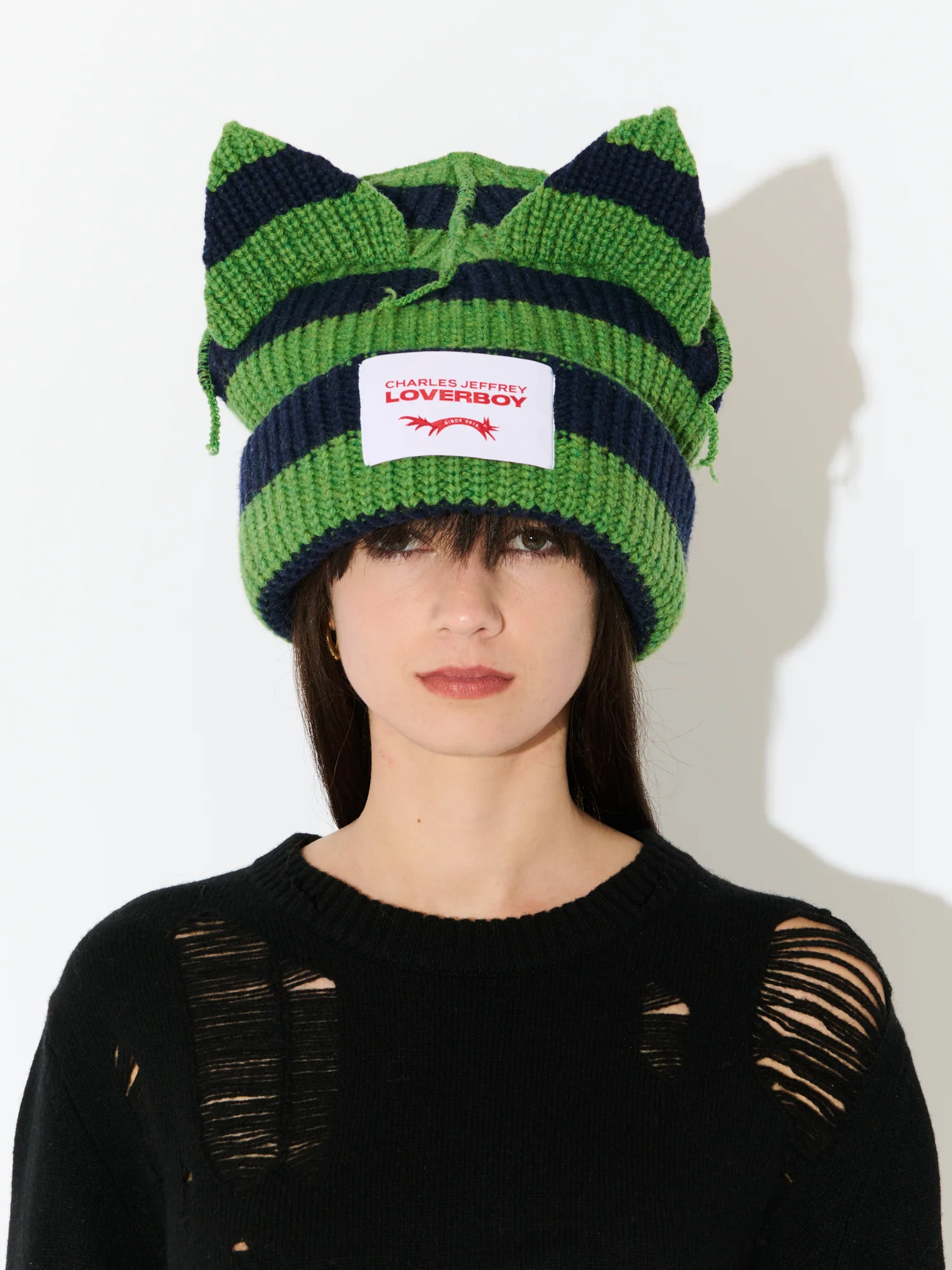 SUPERSIZED CHUNKY EARS BEANIE in GREEN NAVY
